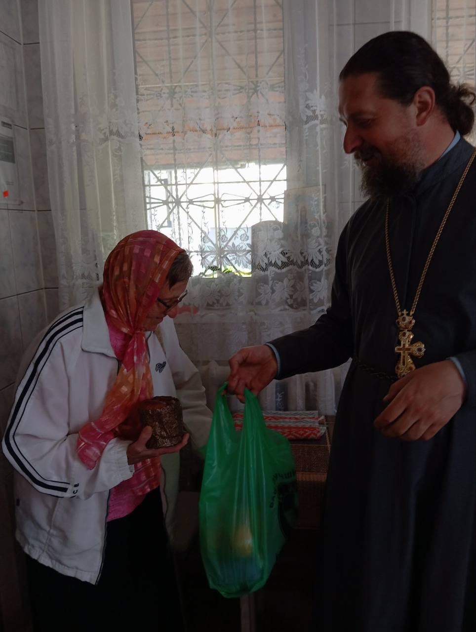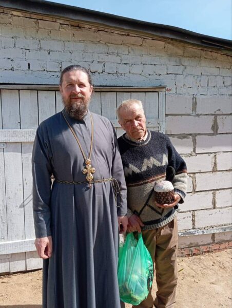 05.05.2024 года. Настоятель Свято- Духова храма п. Самохваловичи иерей Сергий Короткий посетил престарелых прихожан , поздравил со Светлой Пасхой и вручил подарки .