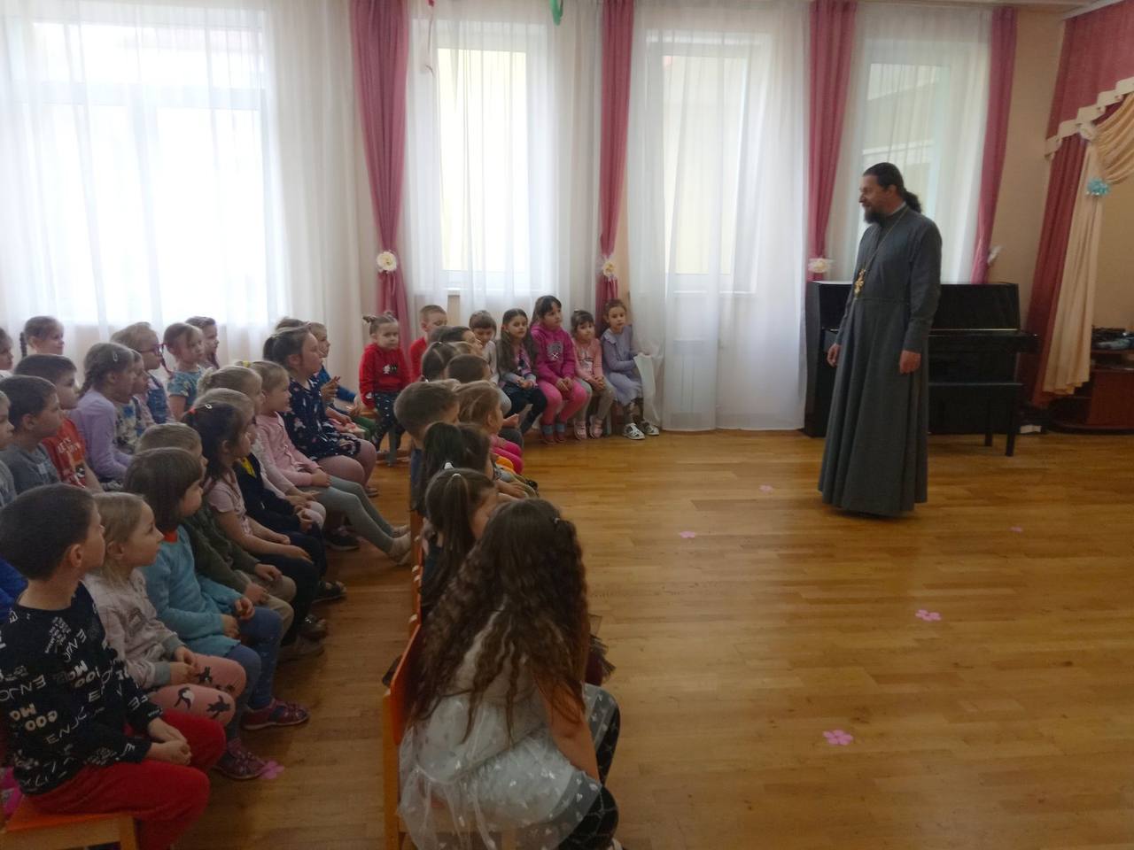 Батюшка рассказал ребятам об истории праздника, событиях, которые лежат в его основе и о том, как появилась традиция красить яйца. Рассказал о том, что Пасха Христова-это самый большой праздник христиан, прославляющий победу добра над злом, жизни над смертью, света над тьмой. Дети задавали интересующие их вопросы. А в конце сделали фото на память об этой встрече и поблагодарили за добрые слова и пожелания.