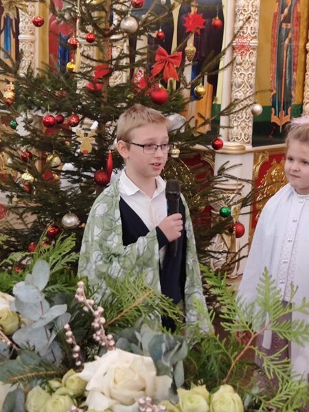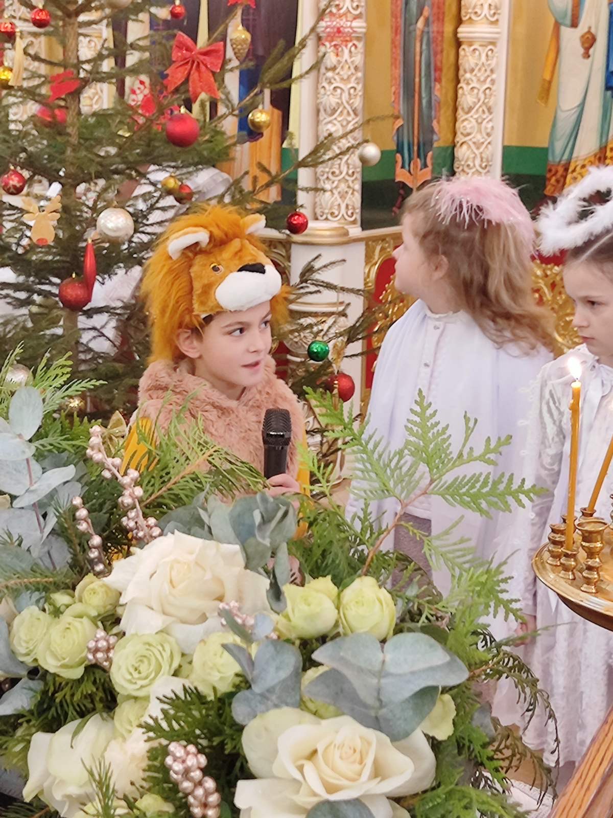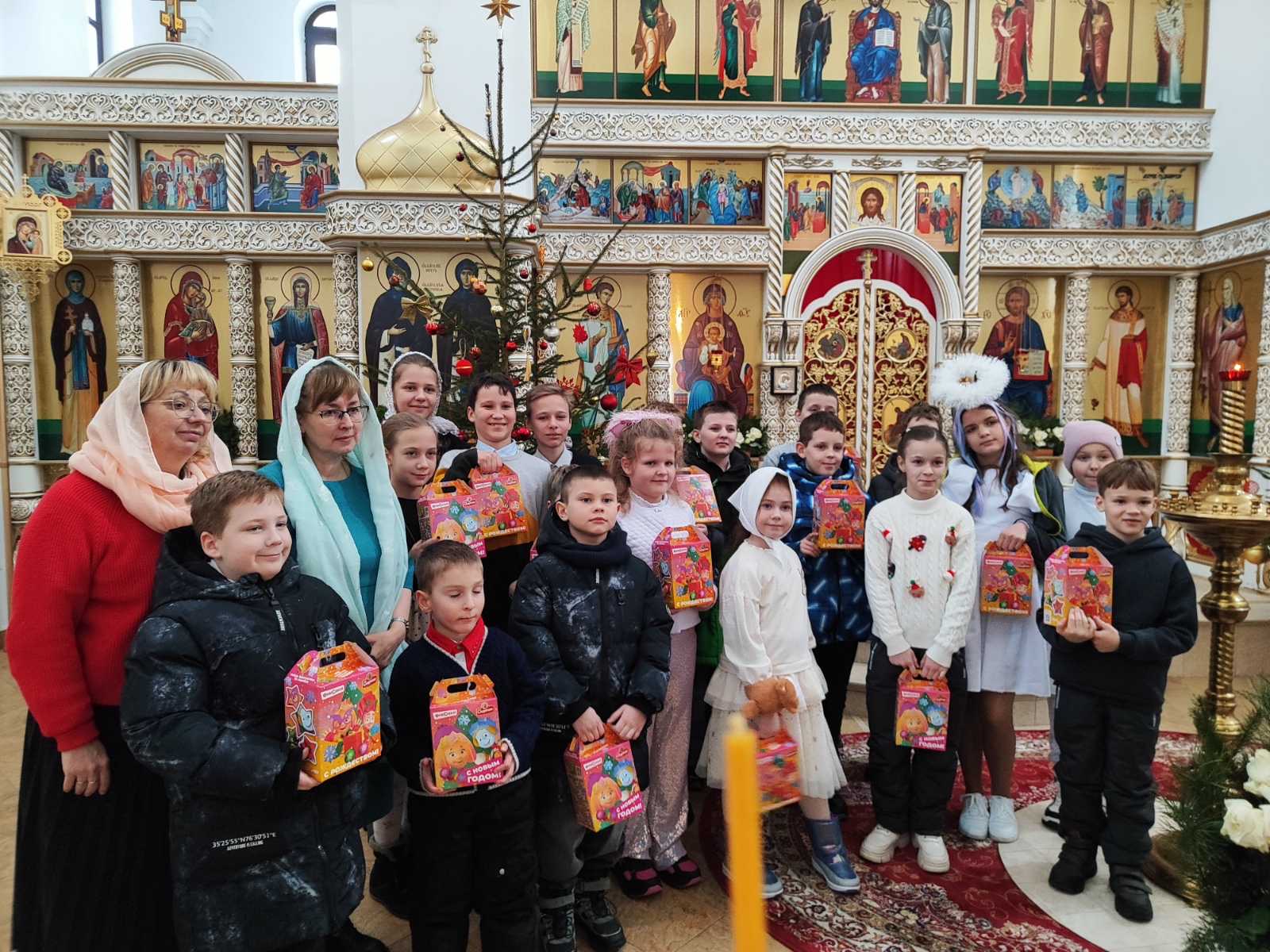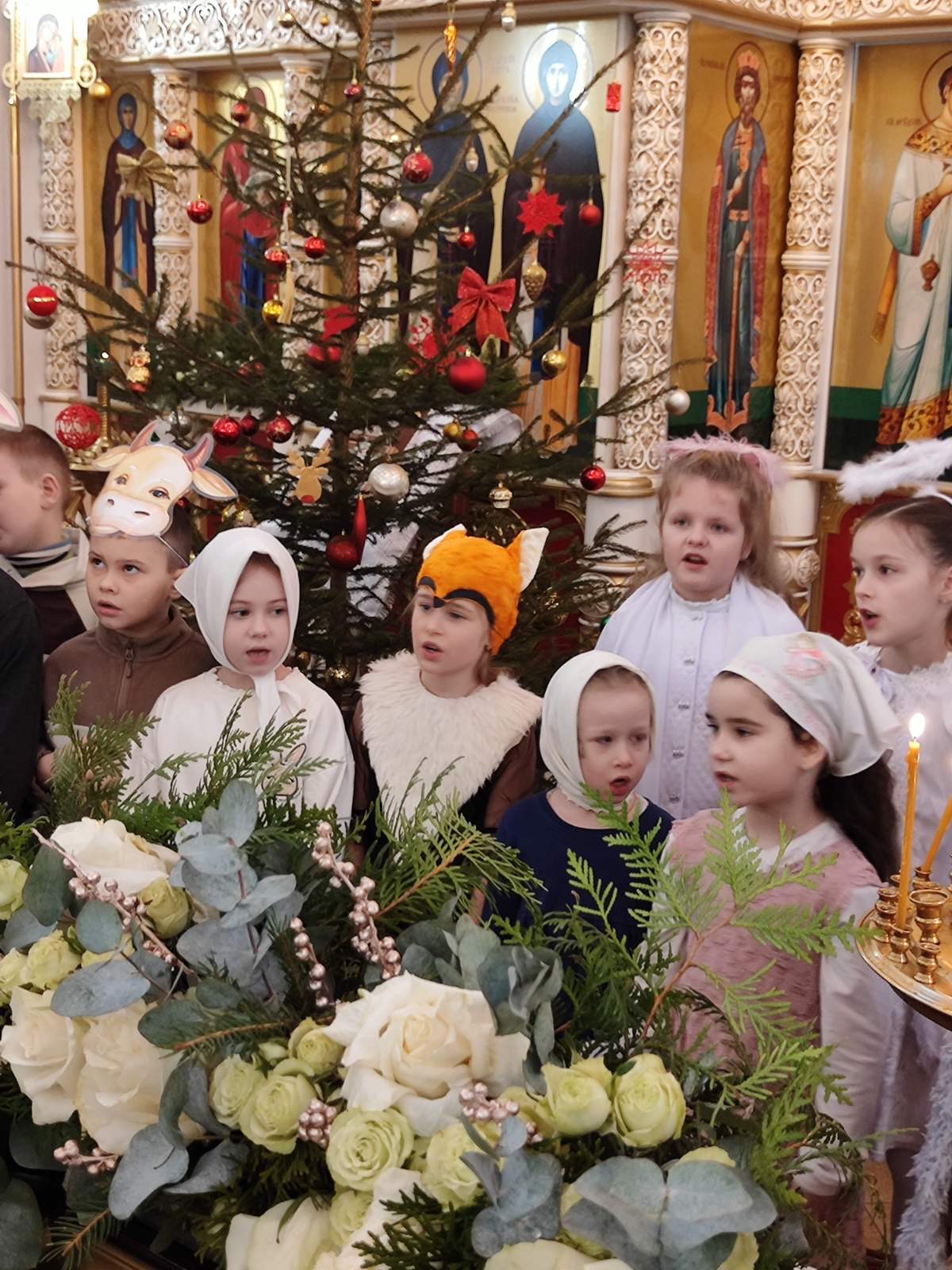 11 января учащиеся Воскресной школы храма святого великомученика и целителя Пантелеимона поздравили прихожан с Рождеством Христовым,со Святками.Ребята подготовили небольшой концерт: пели ,читали стихи, показали сказку » Ночь перед Рождеством».Сказку, интересную и взрослым ,и детям ,которая закончилась мудрыми словами: