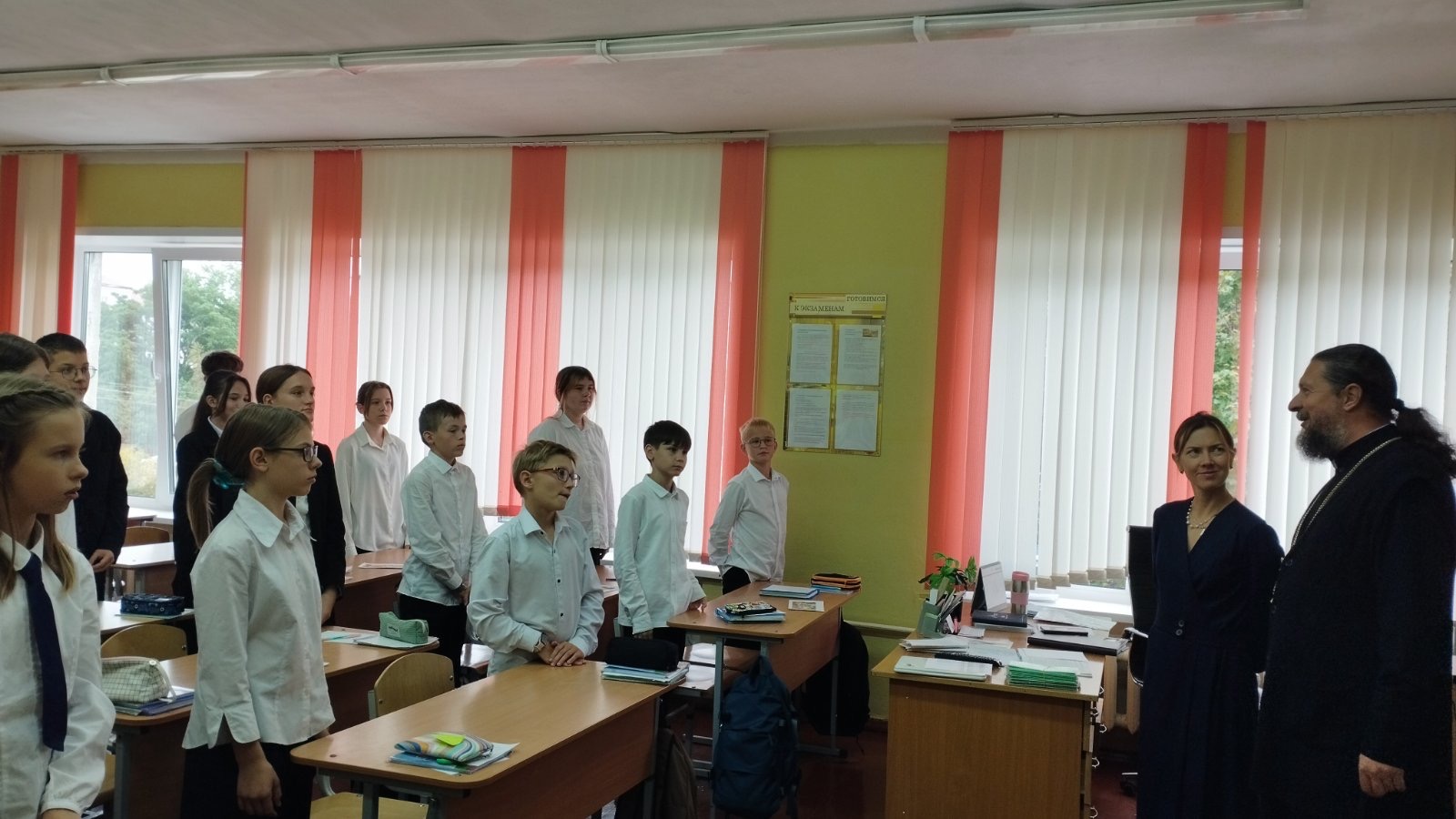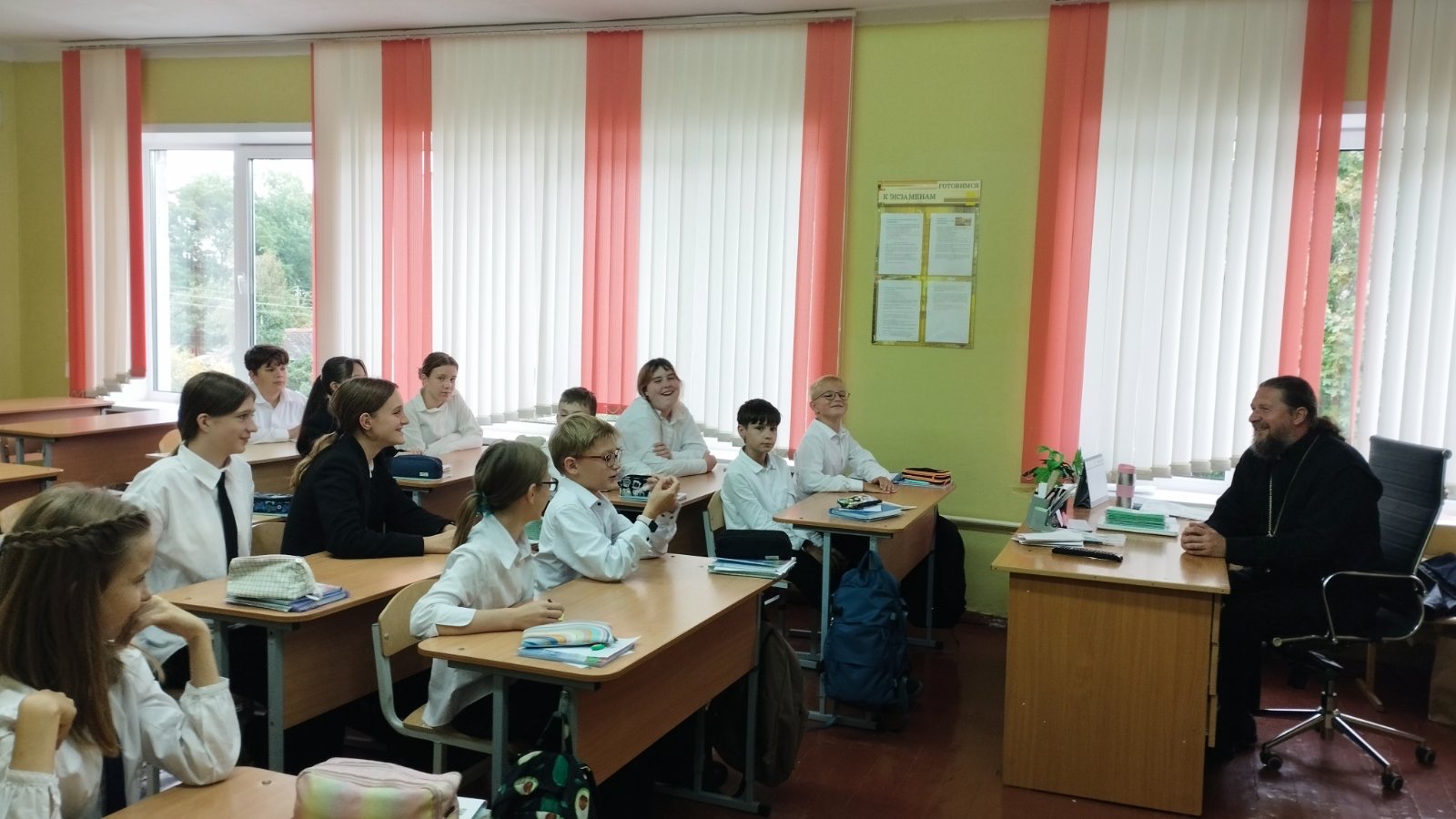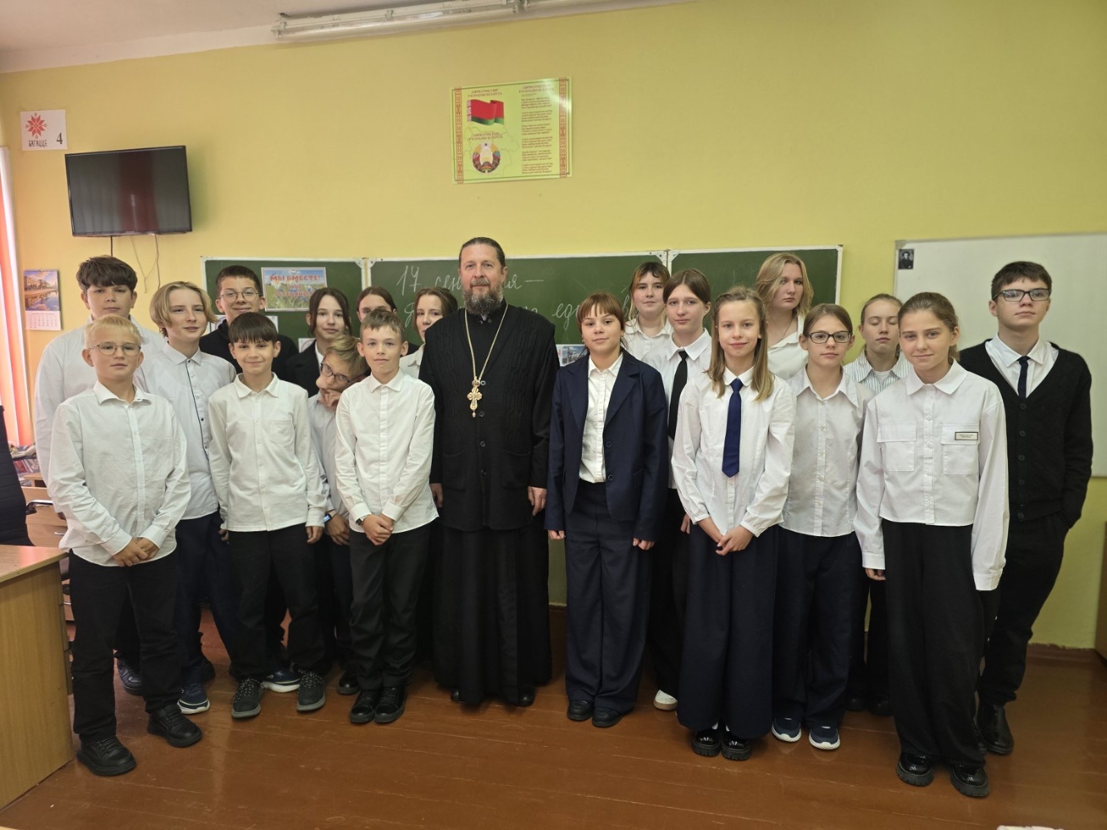 17.09.2025 в Самохваловичской средней школе в рамках работы ресурсного духовно-нравственного центра прошёл час духовного общения «Во имя мира и добра» учащихся 7 класса с иереем Сергием Коротким.