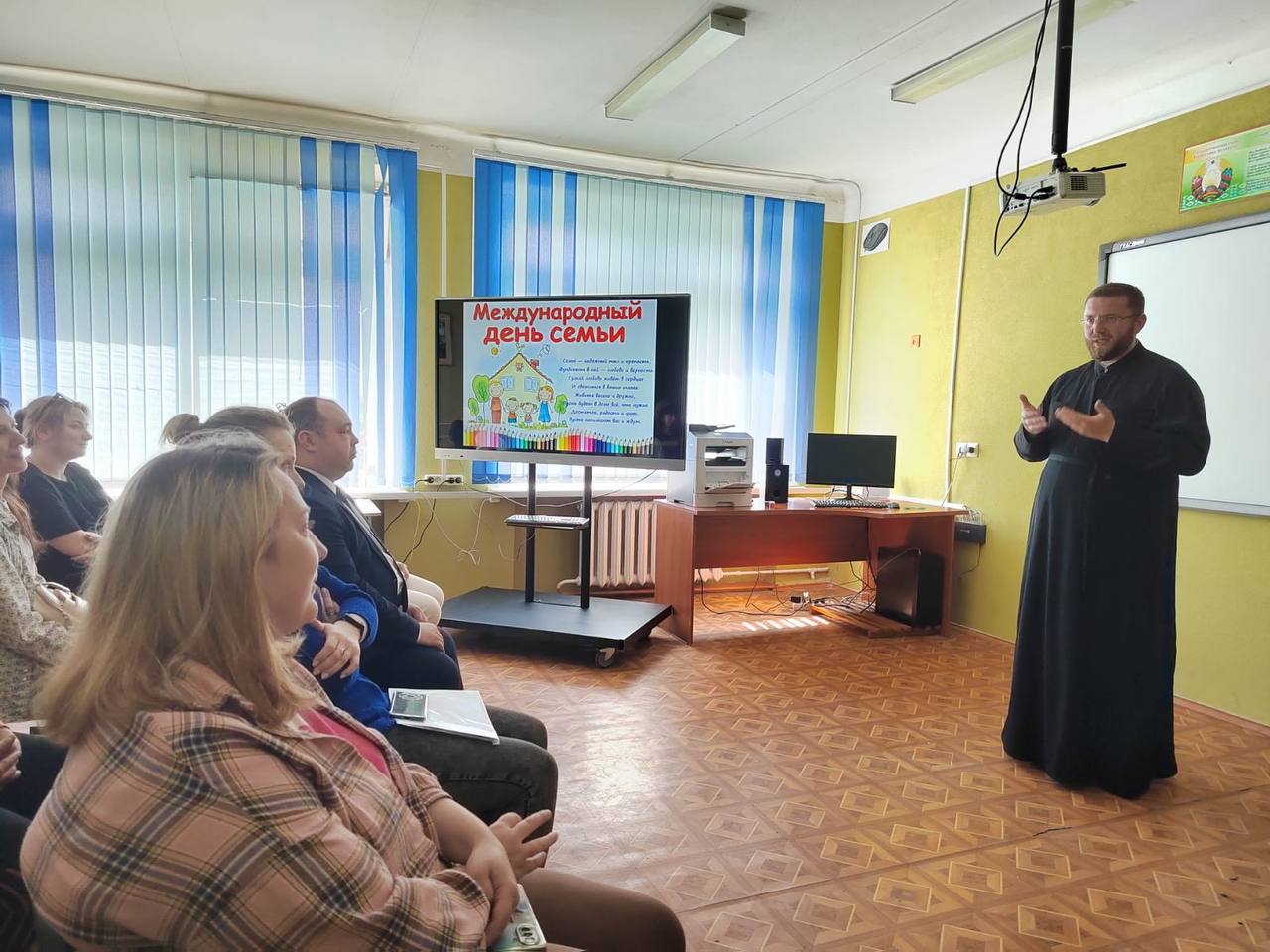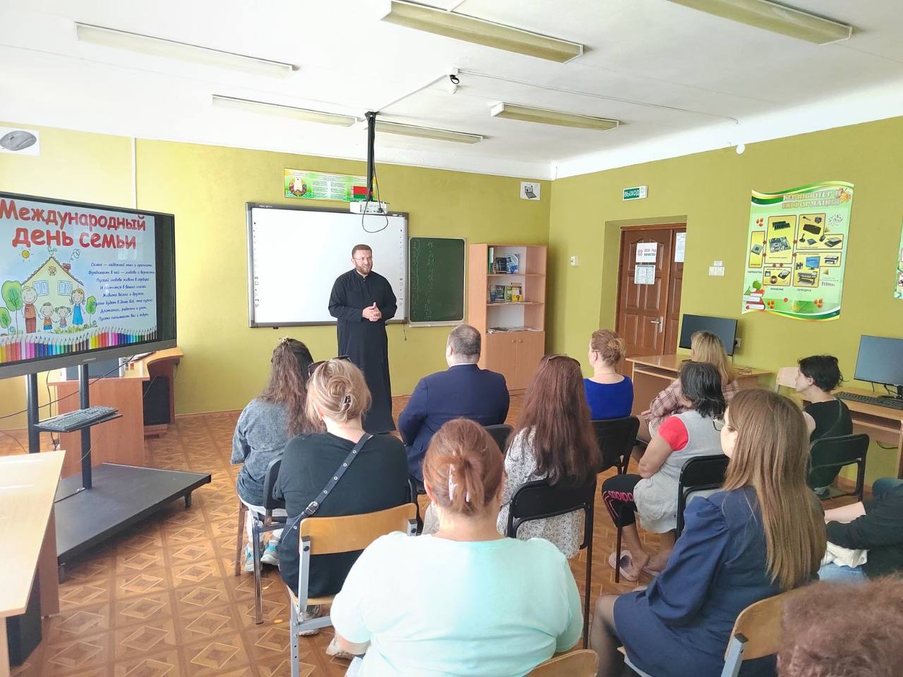 18 мая в ГУО » Луговослободская средняя школа» состоялась встреча с педагогическим коллективом школы, а так же родителями учащихся средней школы на тему » Семья — малая церковь».
