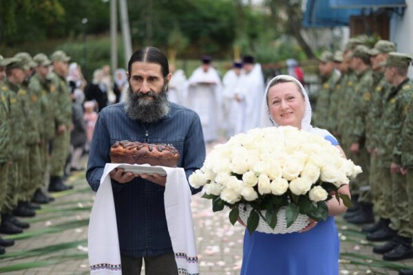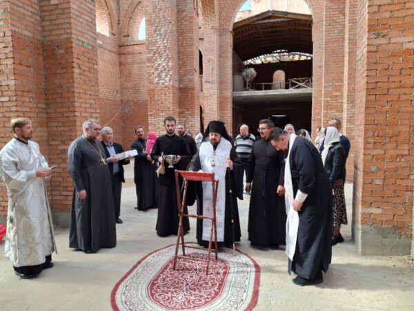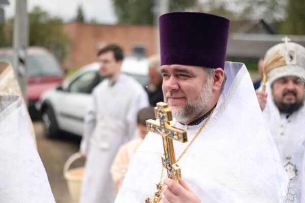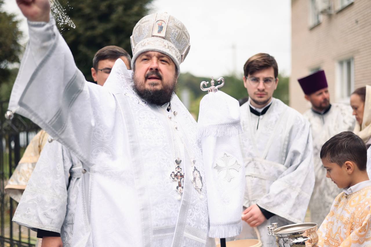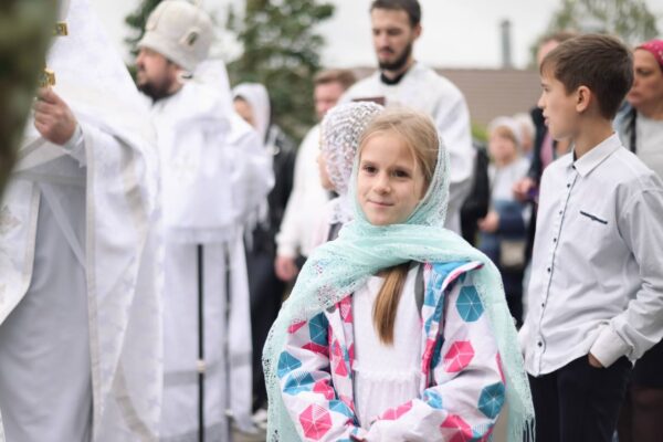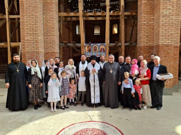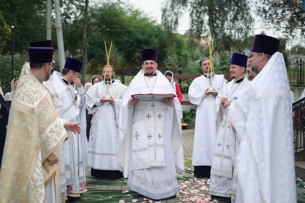 В конце Литургии был совершён крестный ход вокруг храма с молебном и окроплением святой водой молящихся. Епископ Авксентий обратился с назидательным словом ко всем присутствующих и благословил каждого образком иконы Божией Матери «Юровичская-Милосердная». После небольшой трапезы владыка совершил краткий молебен и окропил святой водой строительство нового храма.