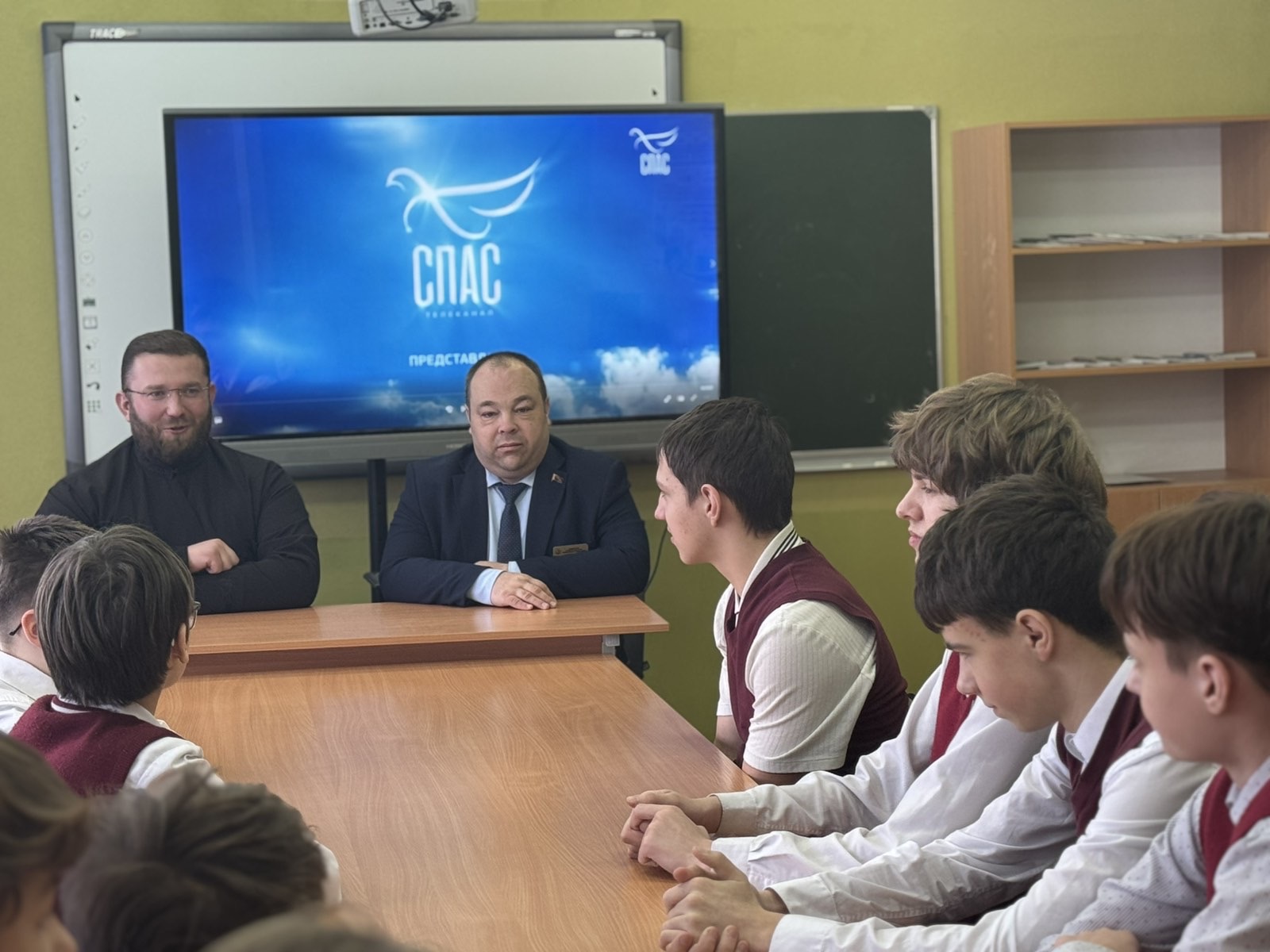 После просмотра диакон Дмитрий провел с ребятами духовно-нравственную беседу. Отец Дмитрий рассказал о глубоком смысле подвига святой Нины, о ее unwavering вере, мужестве и любви к Богу, которые позволили ей, не имея знатного происхождения и внешних ресурсов, совершить столь великое дело. Особое внимание было уделено тому, как пример святой Нины актуален и сегодня, уча молодежь стойкости в вере, доброте и бескорыстному служению ближнему.