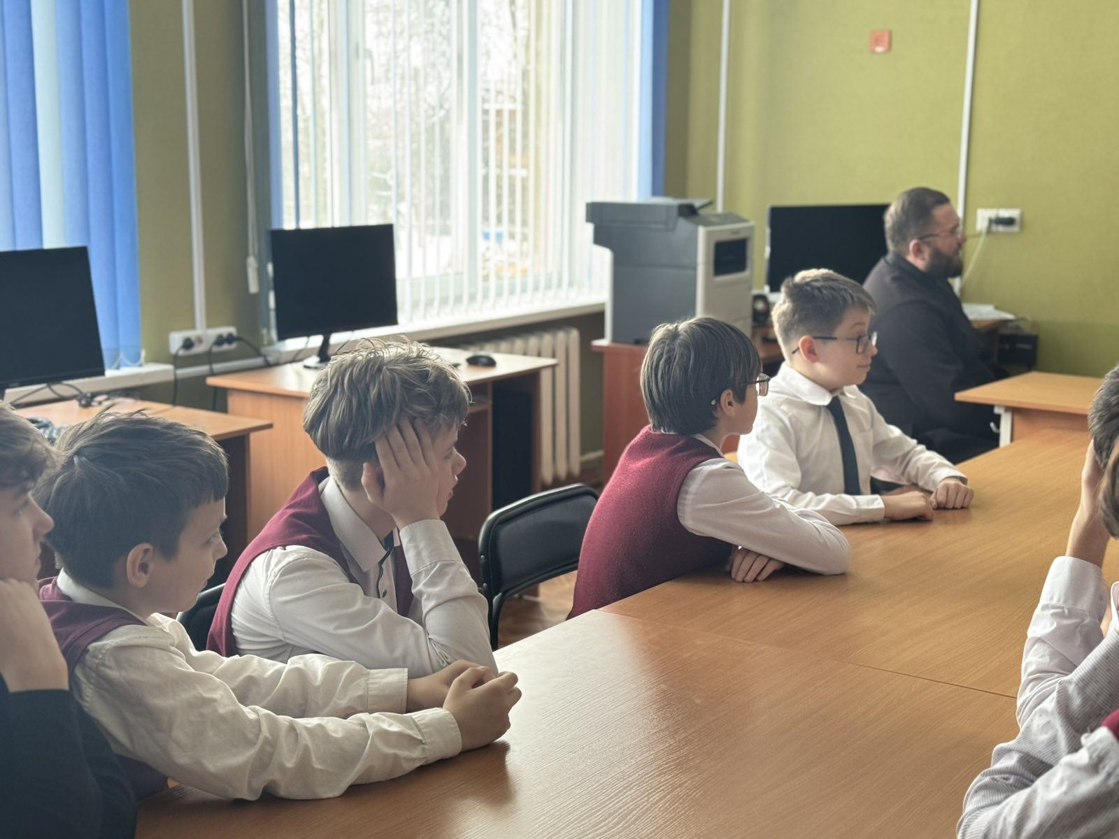 Учащиеся активно участвовали в диалоге, задавали вопросы о жизни святой Нины, о значении апостольского служения и о том, как современные христиане могут следовать ее примеру в повседневной жизни.