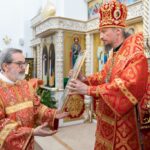 После чего во внимание к 25-летию начала приходской жизни архипастырь вручил активным приходским труженикам Грамоты Патриаршего Экзарха и благодарности.