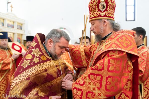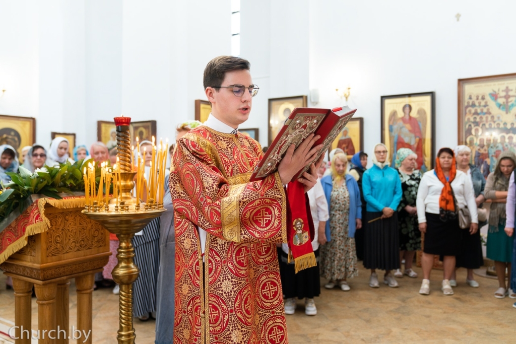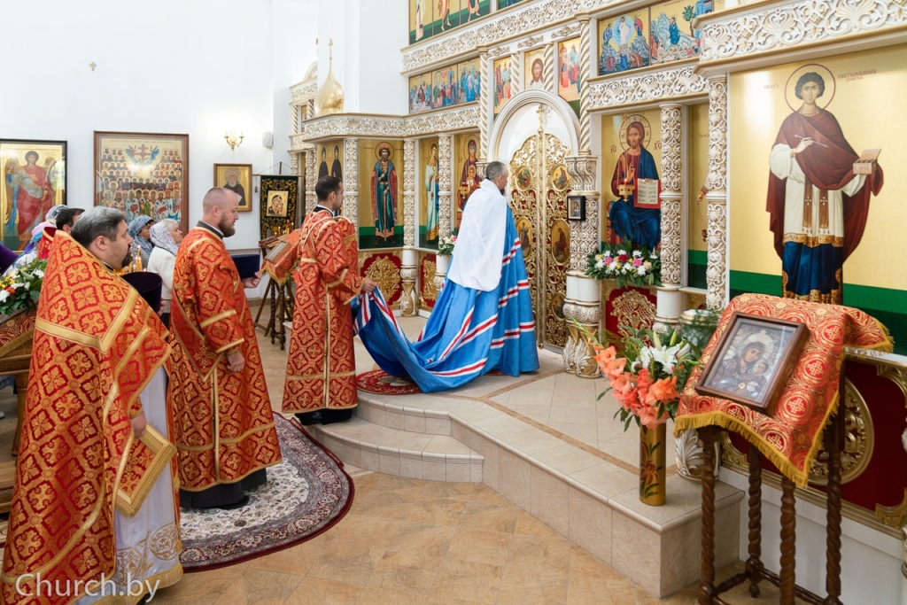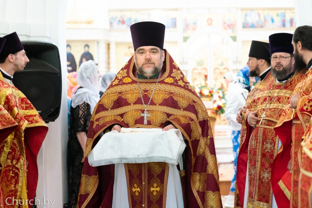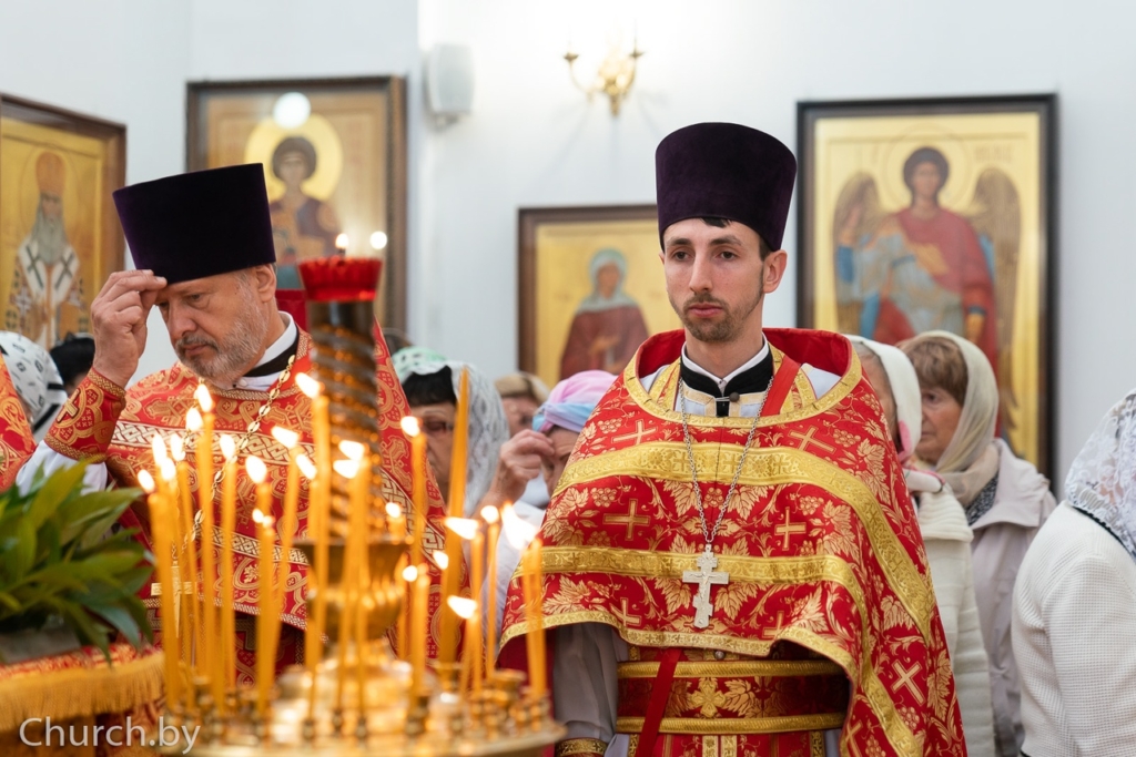 Его Высокопреосвященству сослужили: секретарь Минской епархии протоиерей Андрей Волков; настоятель прихода храма святителя Луки, архиепископа Симферопольского, в городе Минске протоиерей Виктор Резанович; благочинный 1-го Минского районного благочиния, настоятель прихода храма в честь великомученика и целителя Пантелеимона в городском посёлке Мачулищи протоиерей Сергий Пашкевич; настоятель прихода храма Покрова Пресвятой Богородицы деревни Чижевичи протоиерей Геннадий Пашкевич и приглашённое духовенство.