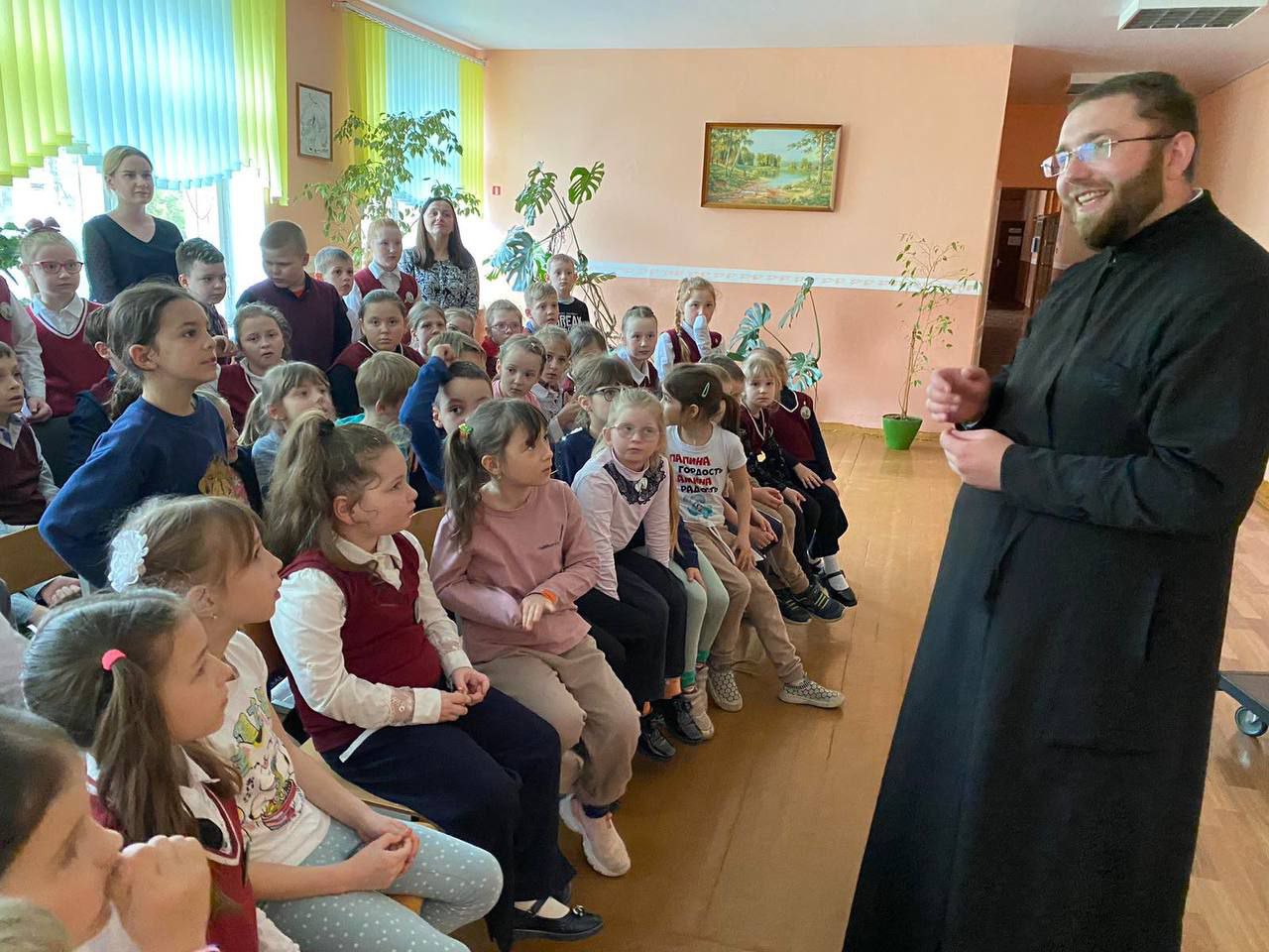 5 апреля 2024 года клирик храма святителя Николая Чудотворца п.Привольный диакон Дмитрий Данилевич встретился с учащимися начальной школы ГУО Луговослободская средняя школа.