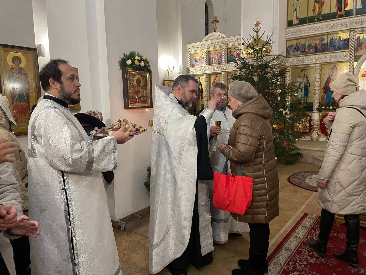 После службы отец Сергий обратился к прихожанам с проповедью, в которой призвал быть милосерднее к своим ближним и всем, кто встречается на нашем пути. Рождество — праздник, который несёт собой радость. Так и нам стоит стремиться к тому, чтобы приносить радость другим. Человек, находящийся в бедственном положении, в мрачном состоянии духа, может духовно возродиться, если дать ему почувствовать хоть немного радости в жизни.