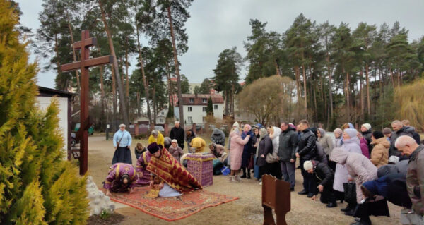 Затем на территории храма был освящен новый поклонный крест