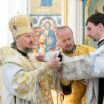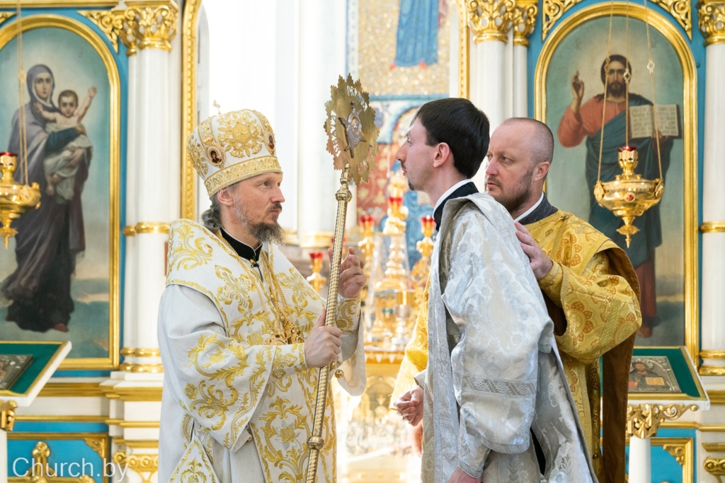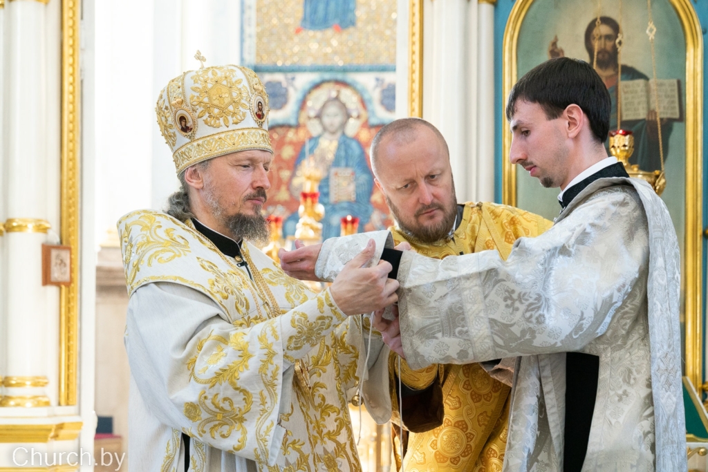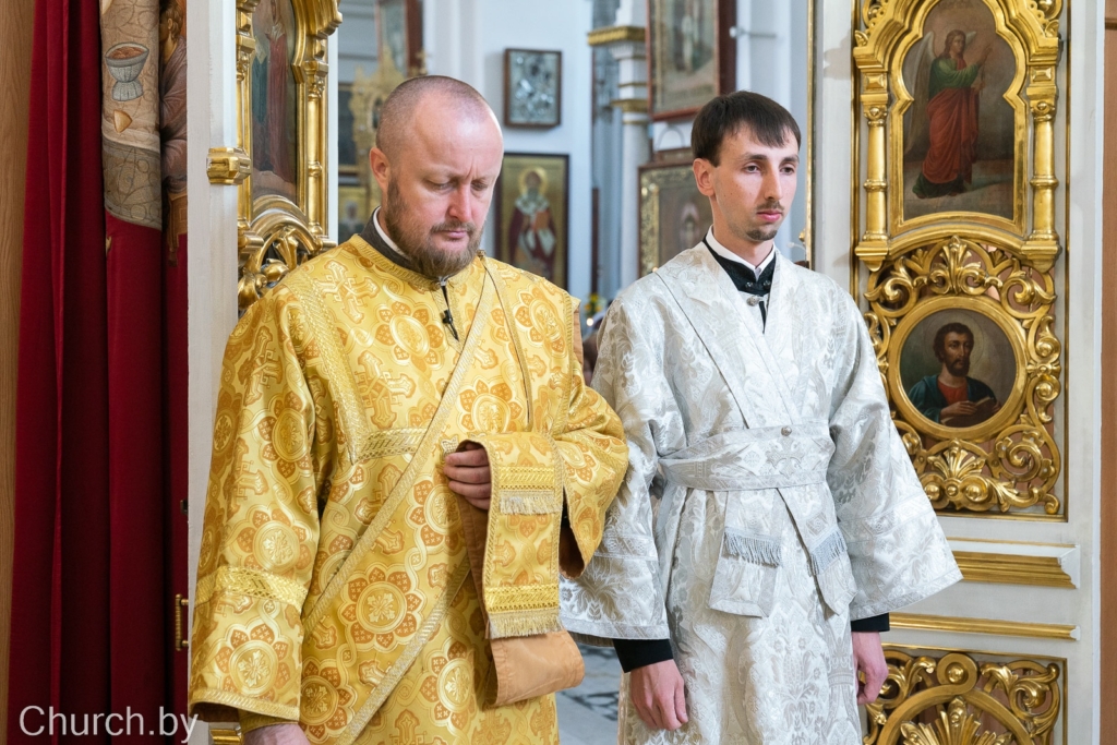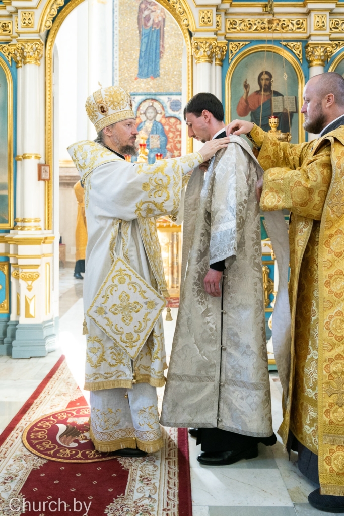 За богослужением состоялась диаконская хиротония пономаря прихода храма великомученика и целителя Пантелеимона г.п. Мачулищи Евгения Алферова, выпускника Минской духовной академии.