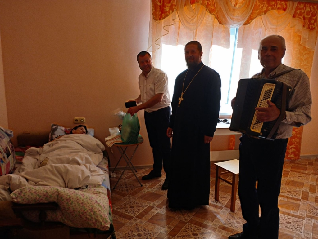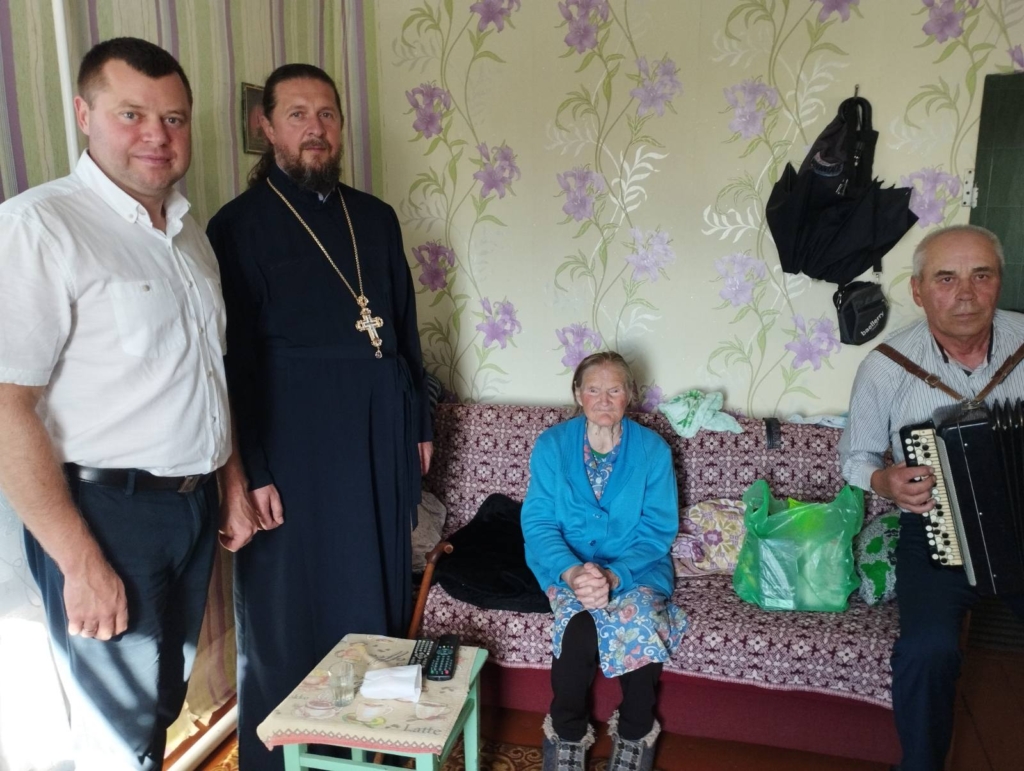 Председателем сельсовета Локуном В.В. и иереем Сергием Коротким пожилым людям были вручены продуктовые наборы и оказаны знаки внимания, которых так не хватает в обычной жизни пенсионеров.