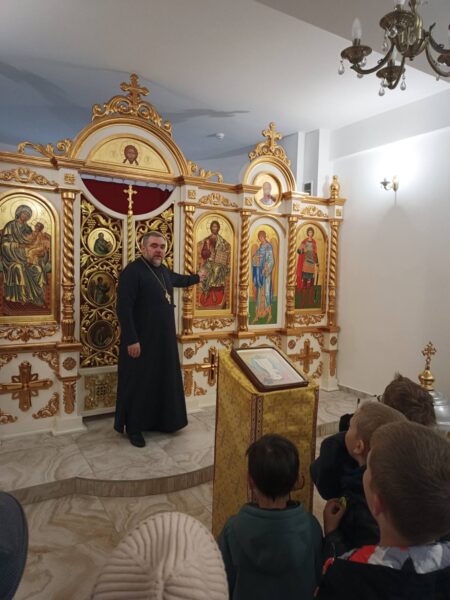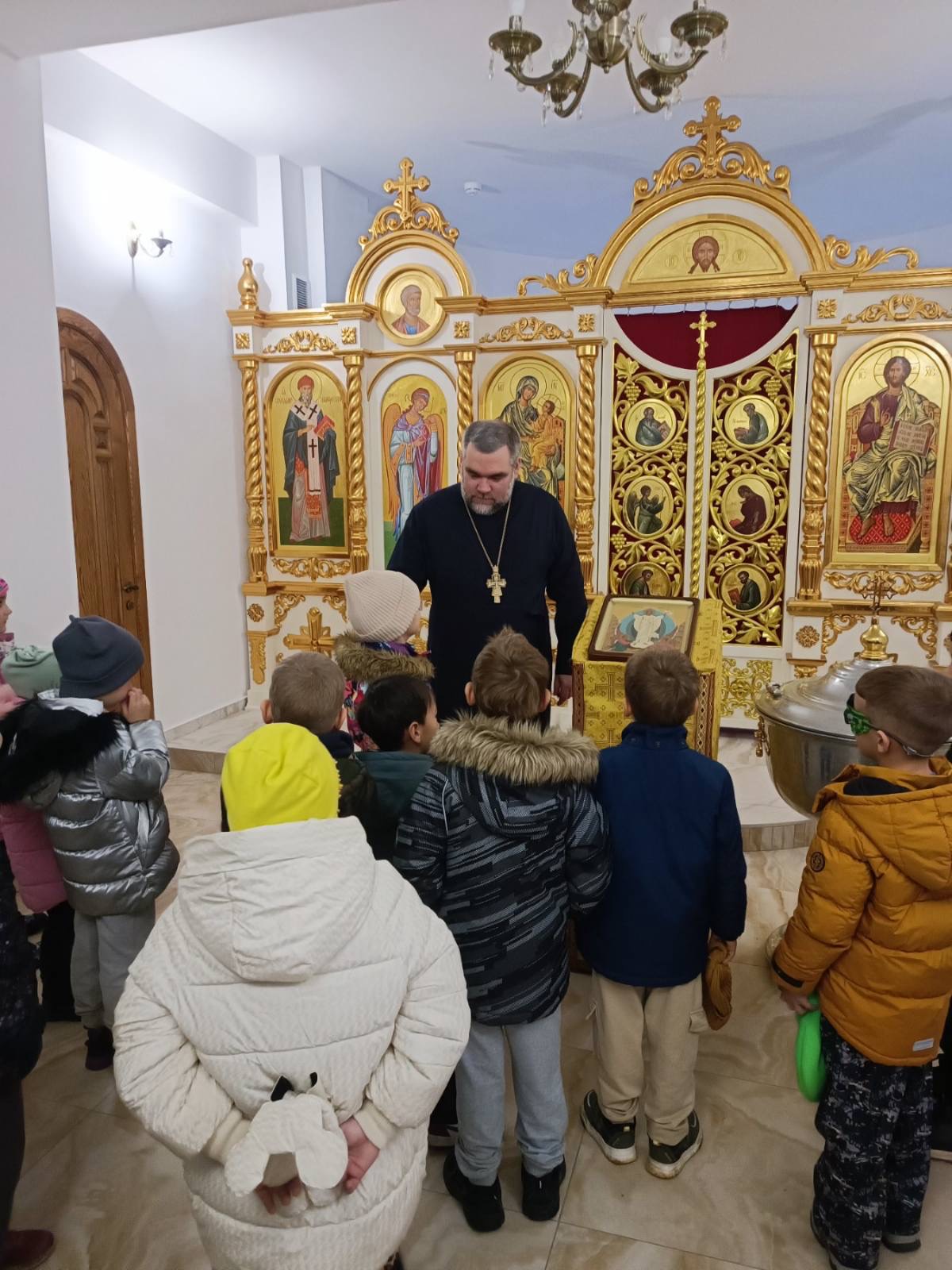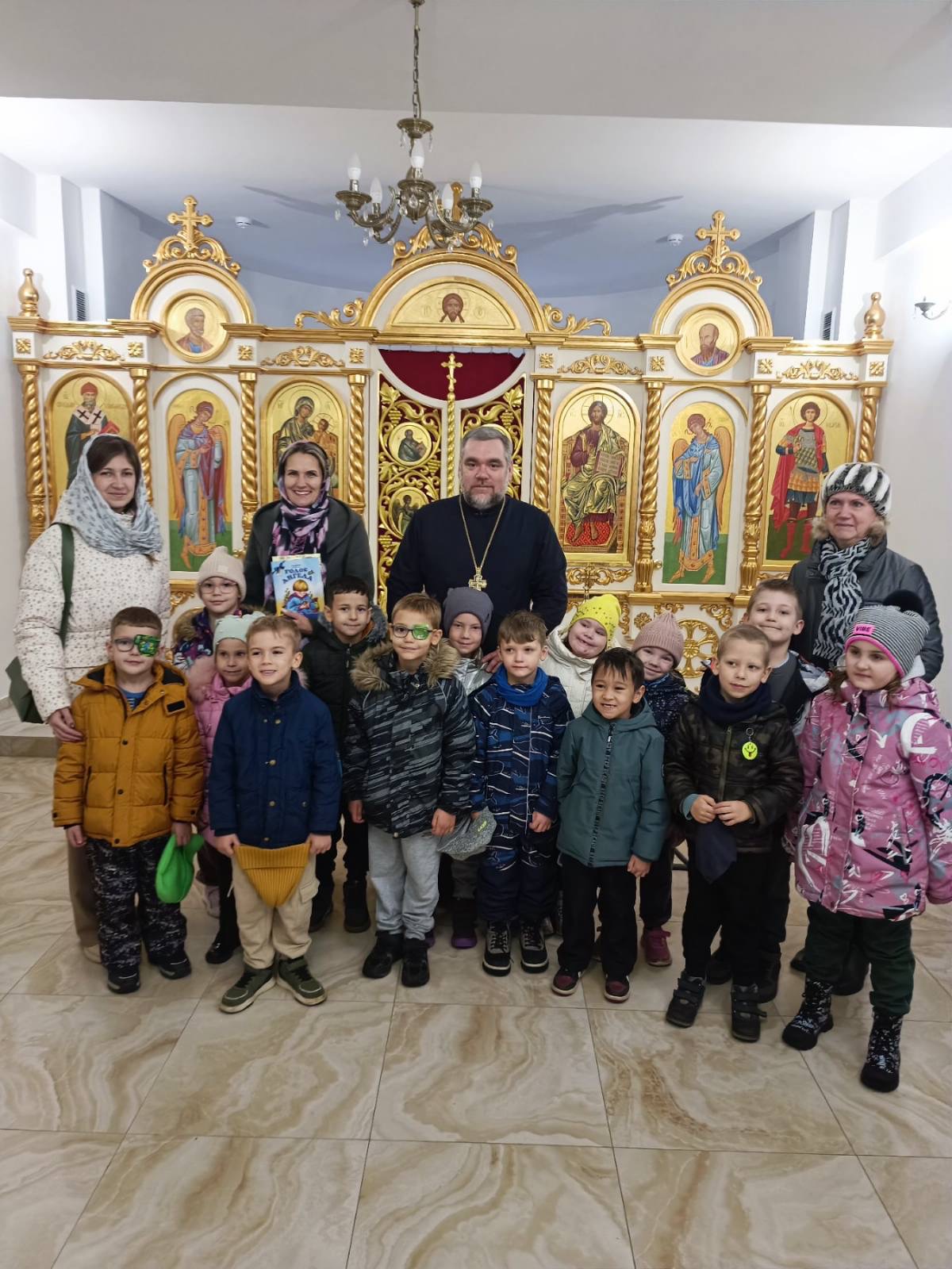 Пантелеимона г. п. Мачулищи посетили воспитанники Мачулищанского детского сада Nº 1. Настоятель храма, протоиерей Сергий Пашкевич, провел для них увлекательную экскурсию, а также беседу, посвященную Дню матери. На память о доброй встрече отец Сергий подарил детям духовные книги.