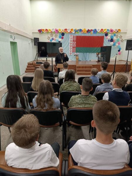 18 мая настоятель храма святителя Лаврентия Туровского в д. Щомыслица протоиерей Александр Головин провёл встречу с учащимися 5-7 классов Щомыслицкой СШ в рамках Международного дня семьи и выступил с беседой на тему