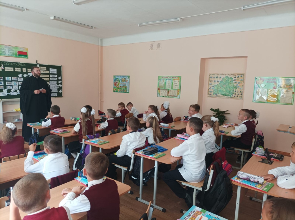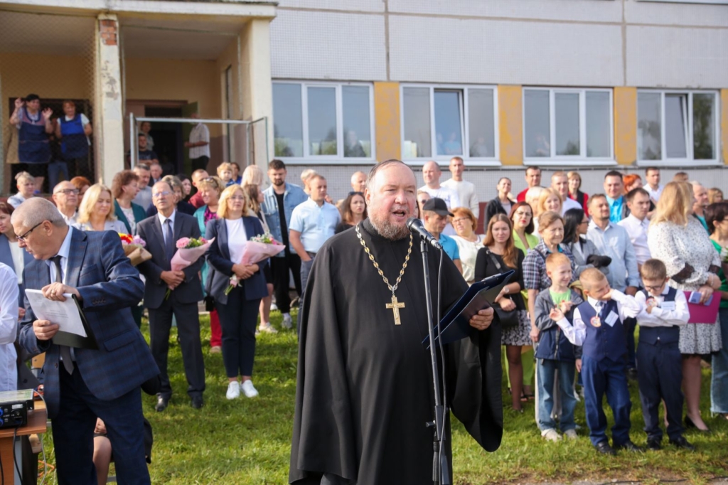 1 сентября 2023 года в г.п. Мачулищи состоялась торжественная линейка по случаю начала учебного года. В мероприятии приняли участие: председатель Мачулищанского поселкового исполнительного комитета Кривошей Сергей Васильевич, директор школы Давыдова Марианна Давидовна, приглашённные гости. В мероприятии принял участие благочинный 1-го Минского районного благочиния, настоятель прихода храма святого великомученика и целителя Пантелеимона г.п. Мачулищи протоиерей Сергий Пашкевич. Также отец Сергий провёл беседу с учащимися младших классов.
