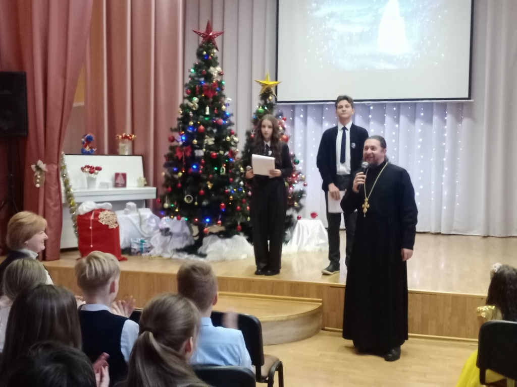 Почетным гостем на мероприятии был настоятель храма Сошествия Святого Духа аг. Самохваловичи иерей Сергий Короткий, который обратился к учащимся и педагогам, а также вручил педагогу Далидчик Юлии свидетельство о повышении квалификации в Институте теологии.