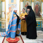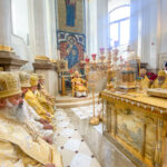 По отпусте Божественной литургии Патриарший Экзарх, архиереи и сослужащие им священнослужители совершили славление священномученику Вениамину, митрополиту Петроградскому.