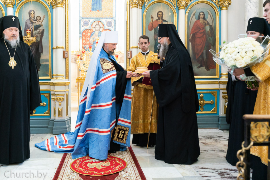 Его Высокопреосвященству сослужили архиепископ Новогрудский и Слонимский Гурий, архиепископ Брестский и Кобринский Иоанн, архиепископ Гомельский и Жлобинский Стефан, архиепископ Гродненский и Волковысский Антоний, епископ Бобруйский и Быковский Серафим, епископ Туровский и Мозырский Леонид, епископ Молодечненский и Столбцовский Павел, епископ Лидский и Сморгонский Порфирий, епископ Светлогорский Амвросий, викарий Гомельской епархии, епископ Пинский и Лунинецкий Георгий.