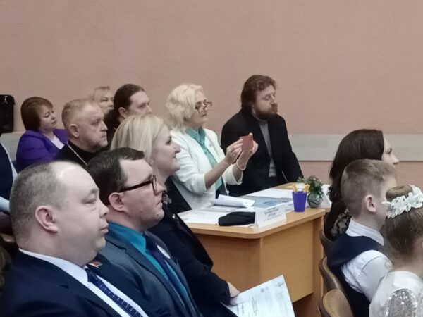 Жюри конкурса и почетные гости: начальник управления по образованию Минского райисполкома Лукша Л.К., настоятель храма Святой Живоначальной Троицы аг. Боровляны протоиерей Андрей Крутелев, настоятель храма Святого Духа аг. Самохваловичи иерей Сергий Короткий, проректор по учебной работе Института теологии БГУ Горанский Андрей Олегович.