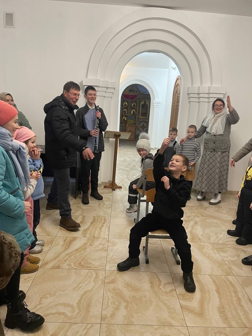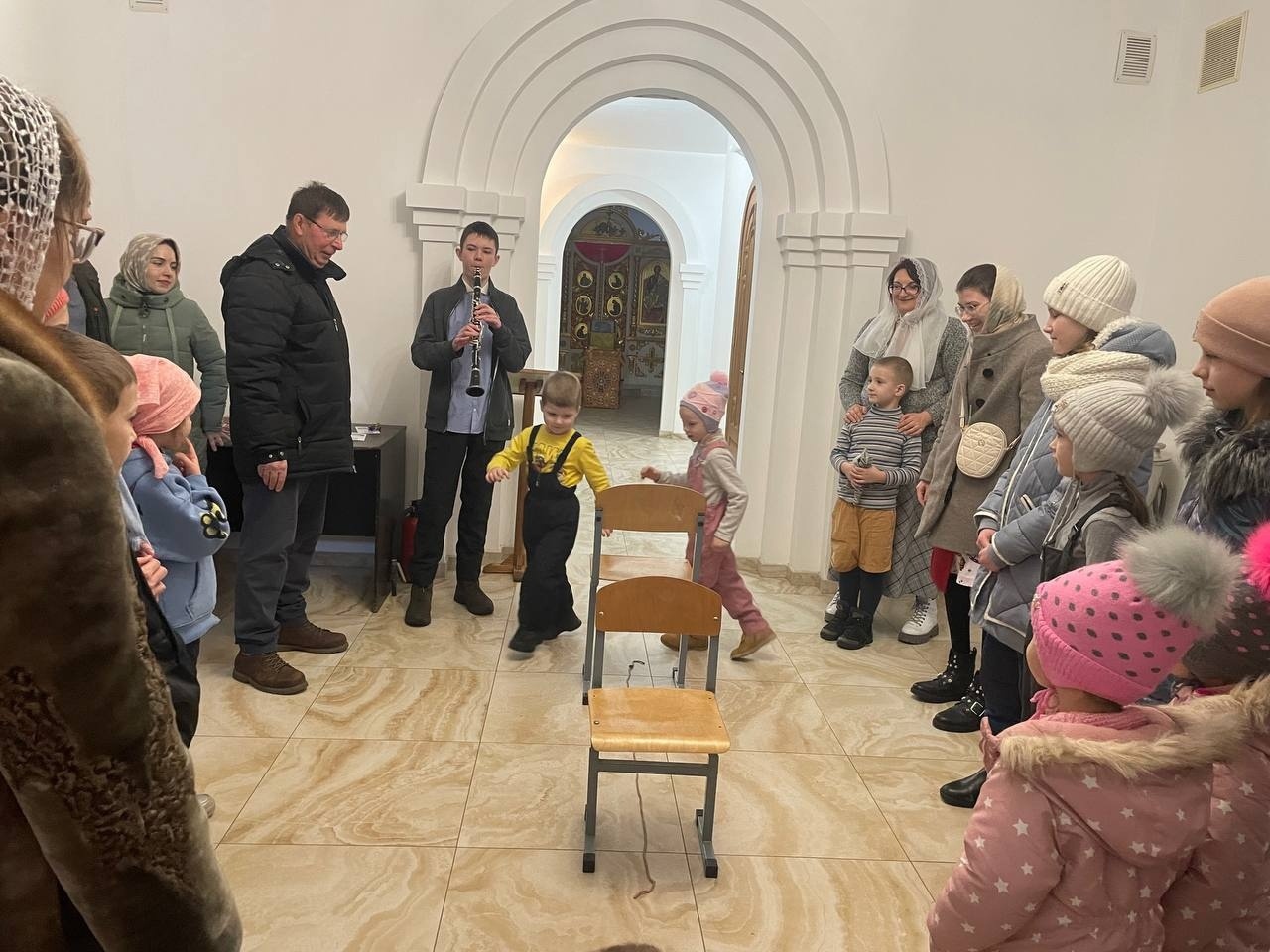 Музыкальной паузой стал мини-концерт прихожанина Максима, сыгравшего на кларнете мелодии из кинофильмов и классические произведения Моцарта, Лефевра.