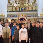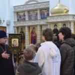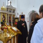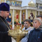 Встретил ребят у храма настоятель храма протоиерей Сергий Пашкевич который провел беседу о устройстве и значении православного храма ,также пообщался с детьми о важности духовного воспитания среди подрастающего поколения.