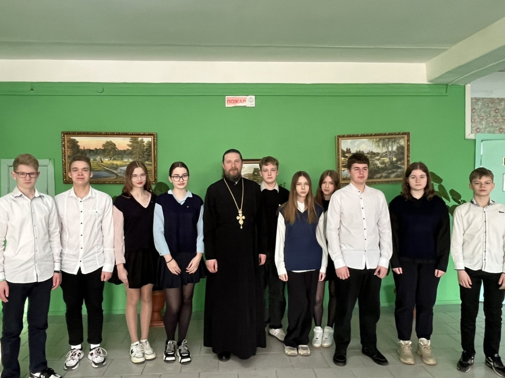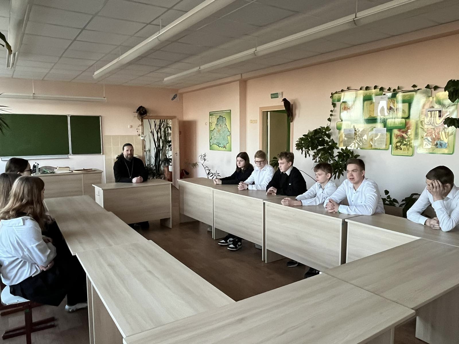 7 марта 2024 года по доброй традиции в Чуриловичской средней школе состоялась встреча настоятеля храма в честь Александра Невского в аг. Чуриловичи иерея Сергия Короткого с учащимися 9 класса.