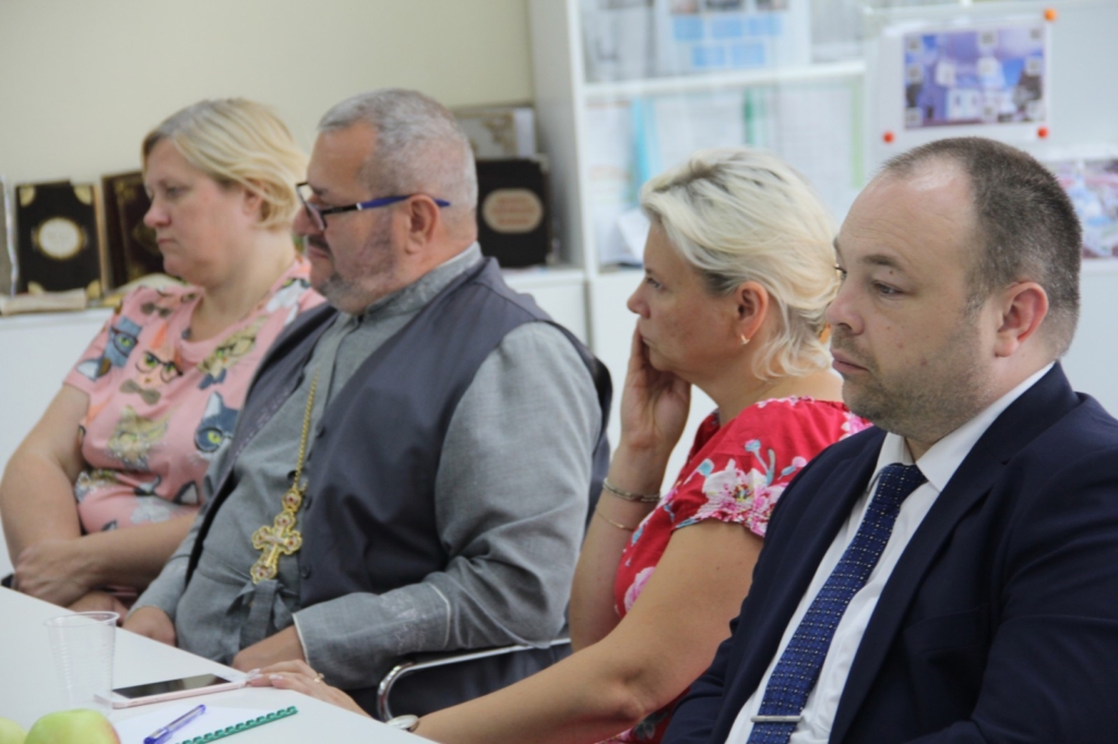В заседании приняли участие: благочинный 1-го Минского районного благочиния протоиерей Сергий Пашкевич, протоиерей Николай Мозгов, иерей Сергий Короткий, начальник управления по образованию Минского райисполкома Лукша Людмила Константиновна и директора учреждений образования Минского района.